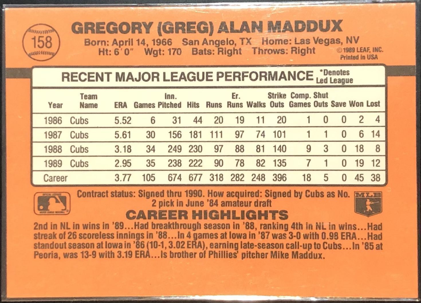 Lot 383 1990 DONRUSS GREG MADDUX (HOF)