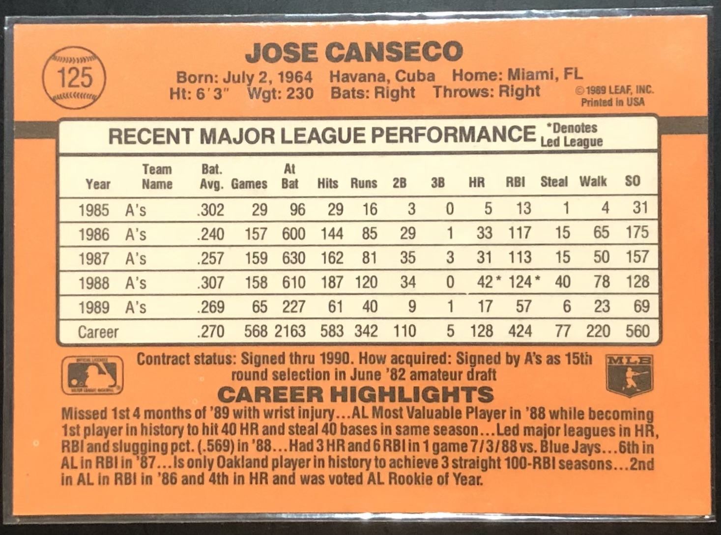 Lot 384 1990 DONRUSS JOSE CANSECO