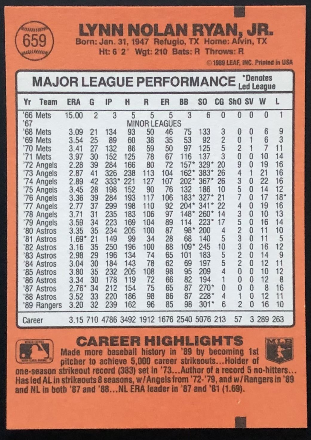 Lot 386 1990 DONRUSS NOLAN RYAN (HOF)