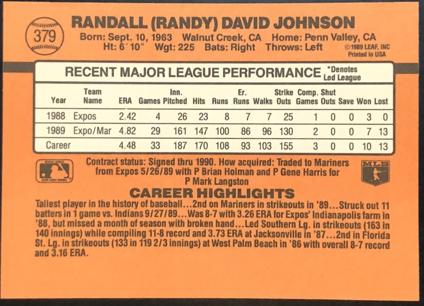 Lot 387 1990 DONRUSS RANDY JOHNSON (HOF)