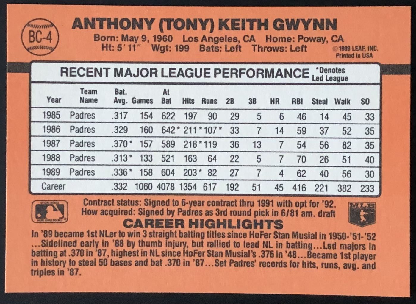 Lot 389 1990 DONRUSS TONY GWYNN (HOF)