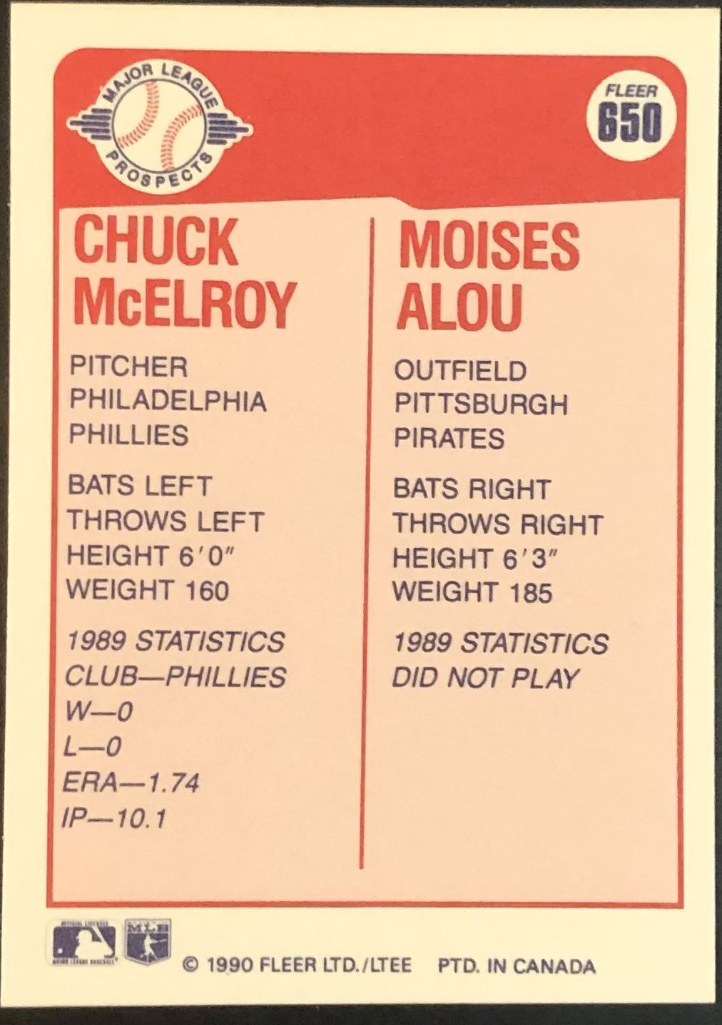 Lot 391 1990 FLEER MOISES ALOU ROOKIE CARD
