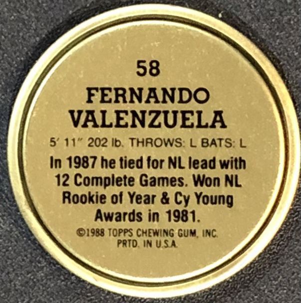 Lot 393 1990 TOPPS BASEBALL COIN - FERNANDO VALENZUELA