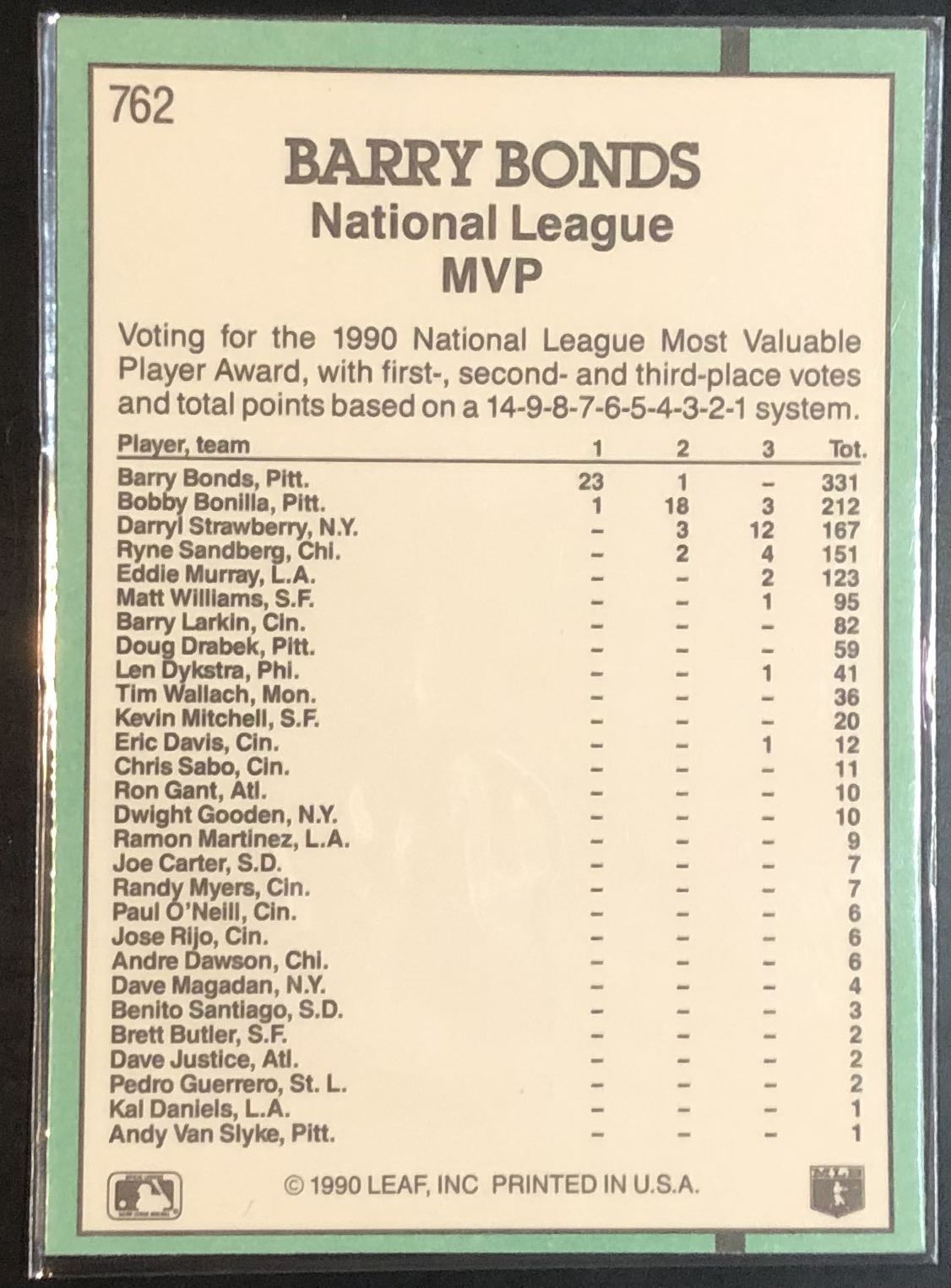 Lot 398 1991 DONRUSS BARRY BONDS