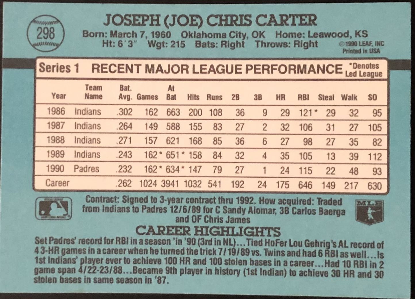 Lot 400 1991 DONRUSS JOE CARTER