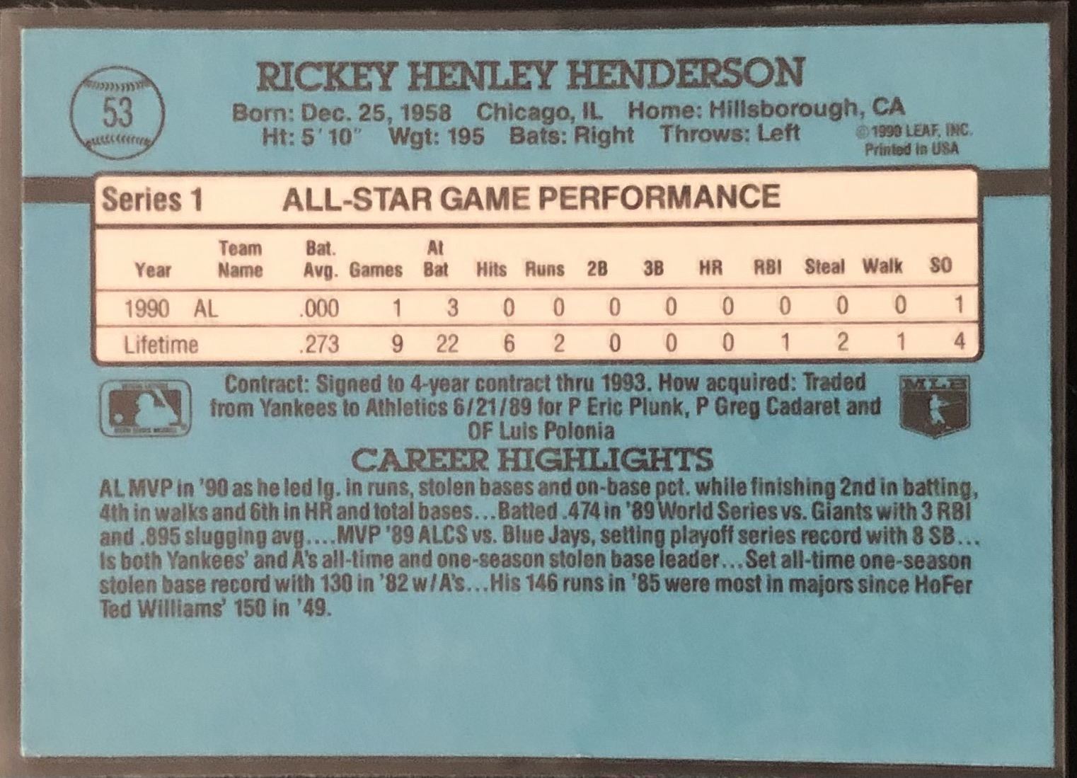Lot 402 1991 DONRUSS RICKEY HENDERSON (HOF)