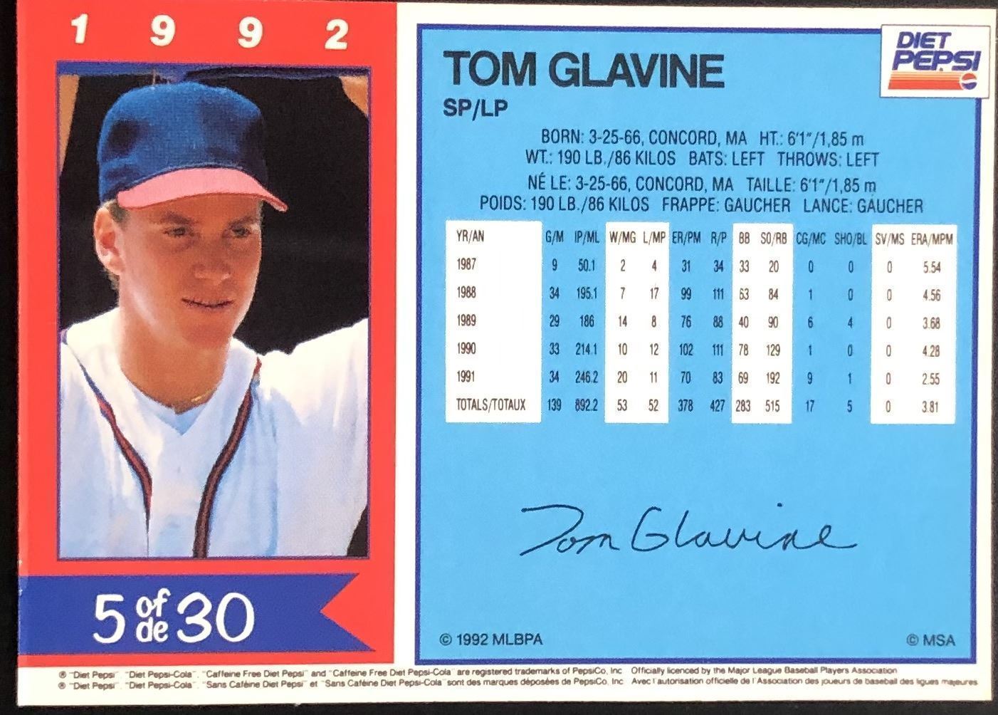 Lot 423 1992 DIET PEPSI TOM GLAVINE (HOF)