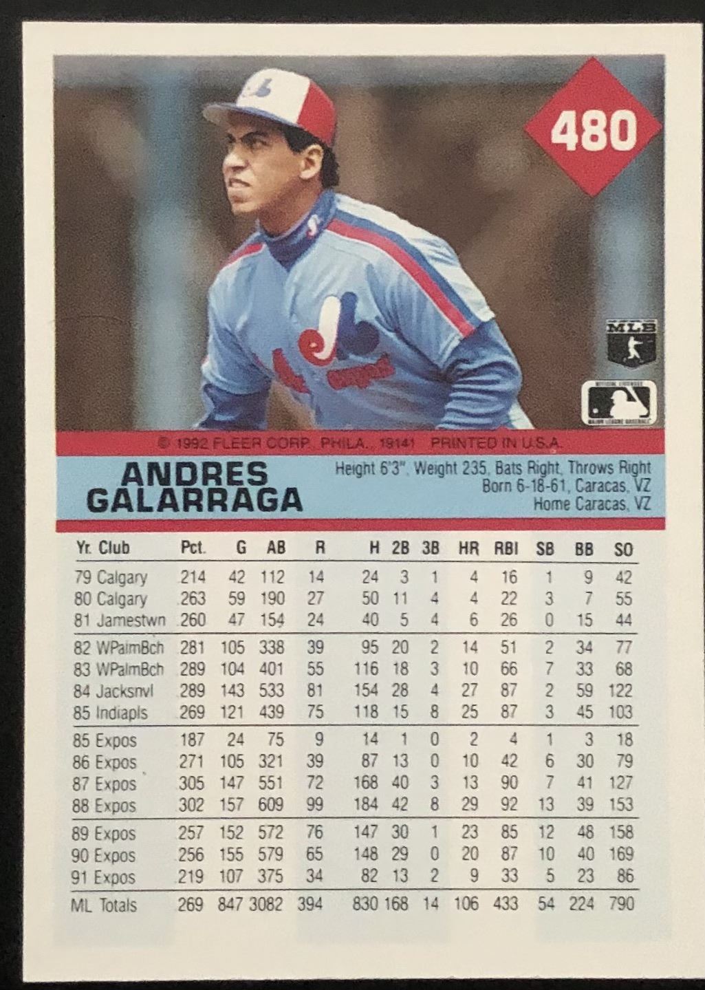 Lot 424 1992 FLEER ANDRES GALARRAGA