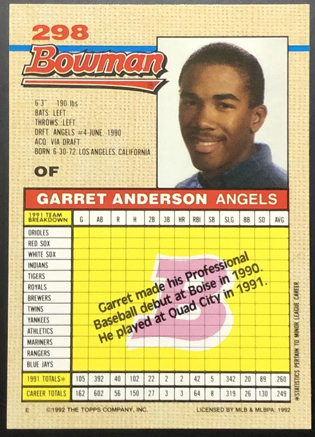 Lot 427 1993 BOWMAN GARRET ANDERSON ROOKIE CARD