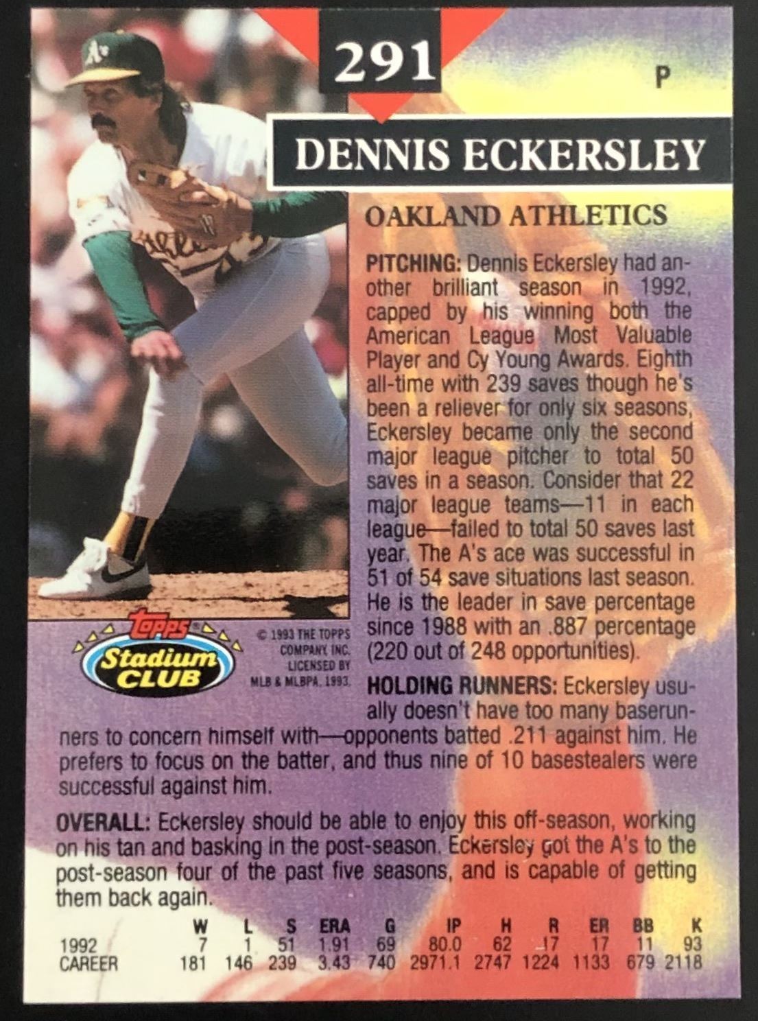 Lot 431 1993 TOPPS STADIUM CLUB DENNIS ECKERSLEY (HOF)