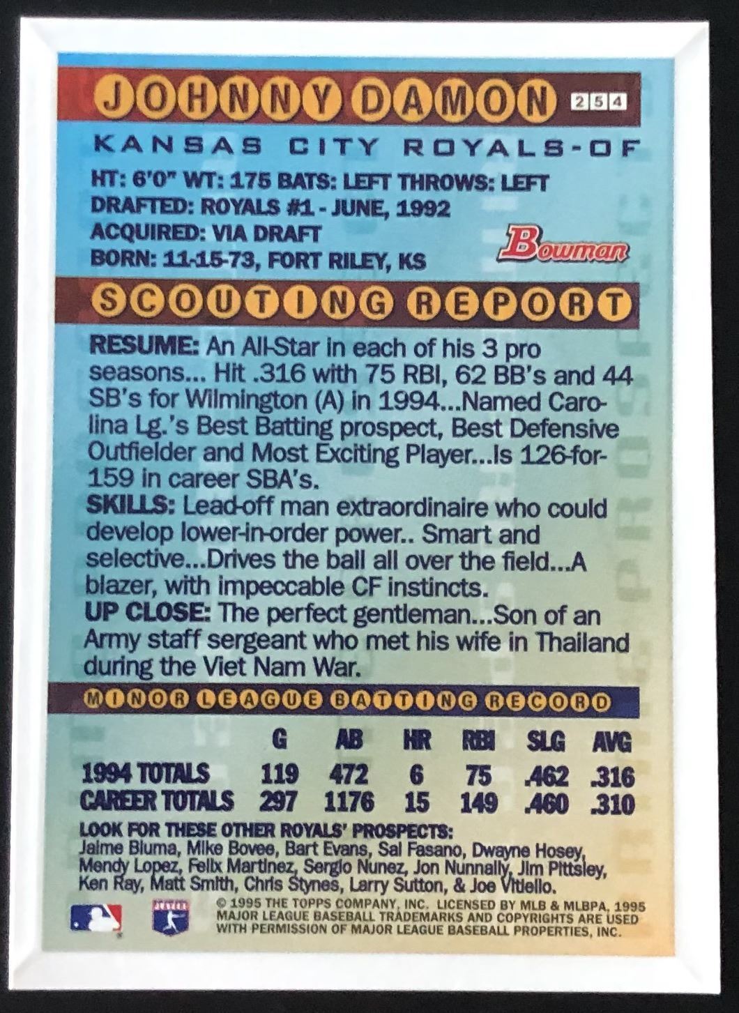 Lot 440 1995 TOPPS JOHNNY DAMON ROOKIE CARD
