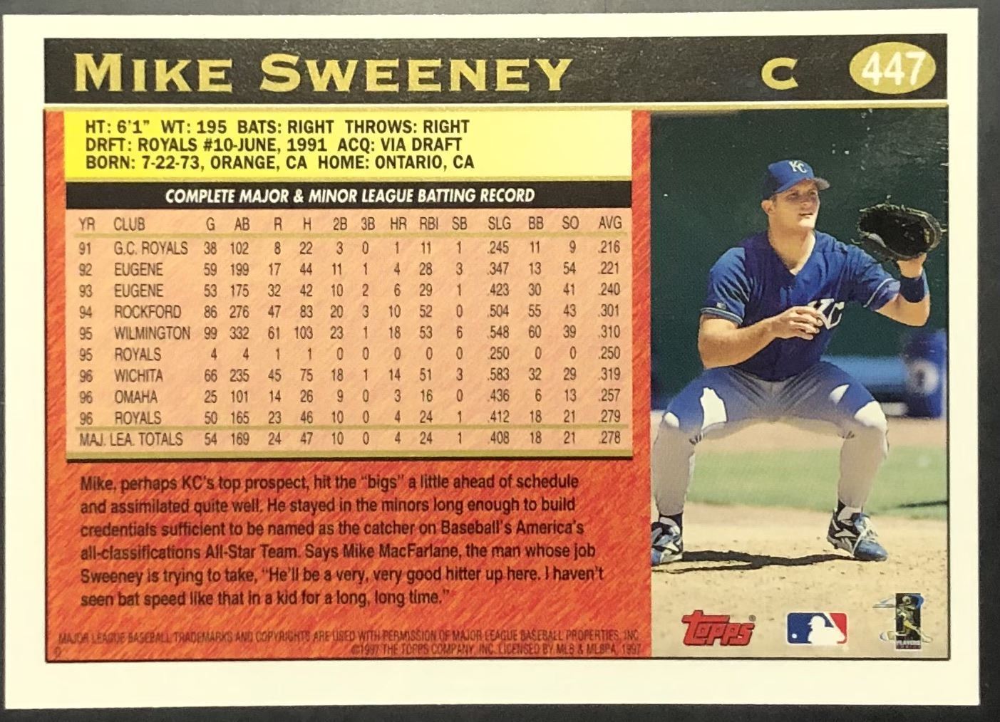 Lot 451 1997 TOPPS MIKE SWEENEY ROOKIE CARD