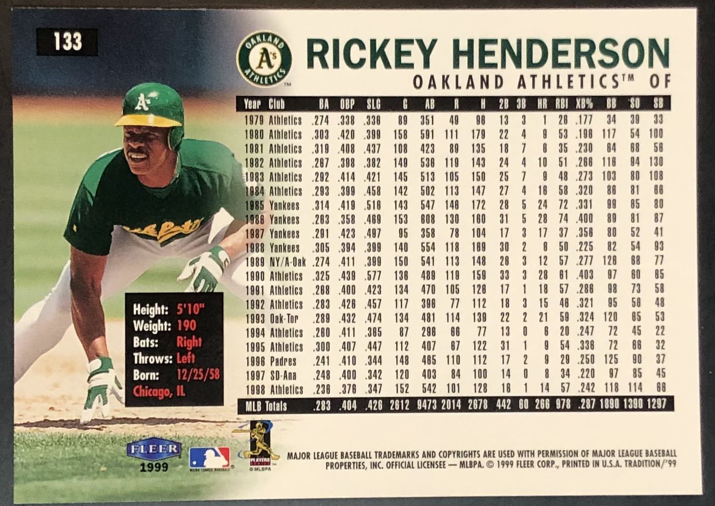 Lot 455 1999 FLEER RICKEY HENDERSON (HOF)