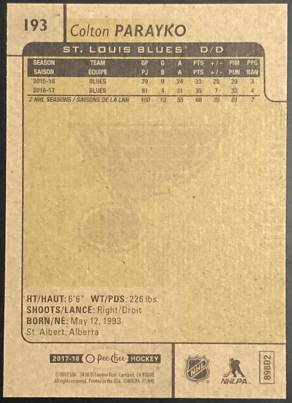 Lot 457 2017-18 O-PEE-CHEE COLTON PARAYKO