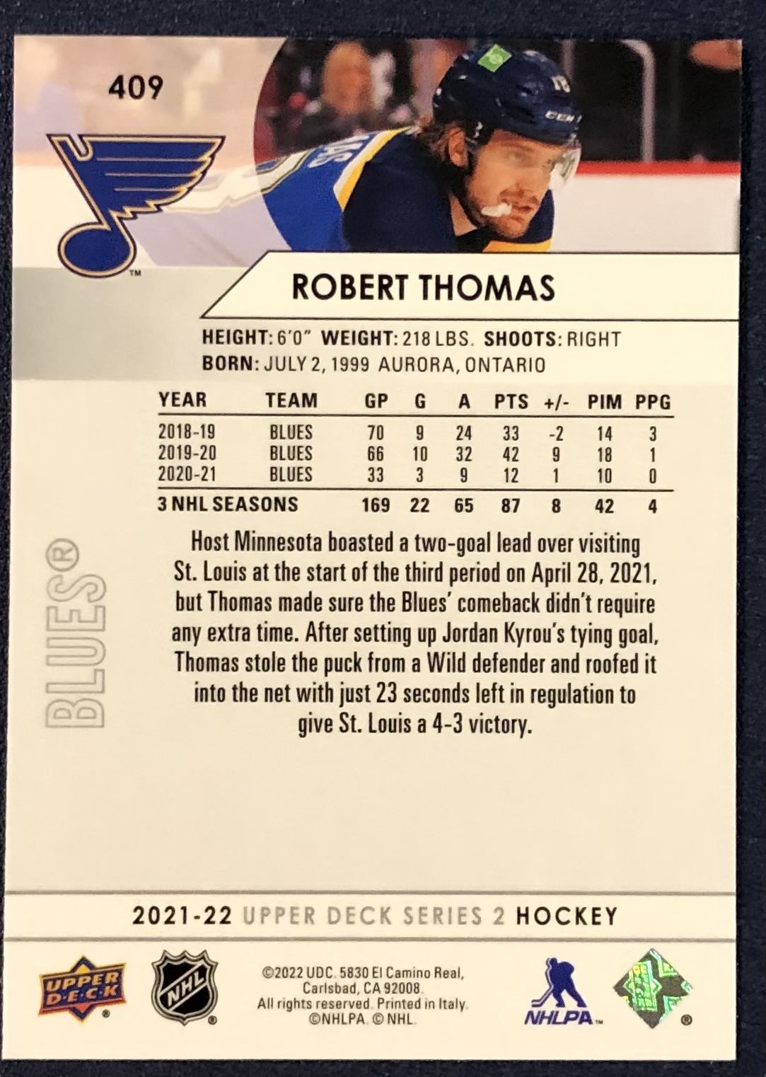 Lot 466 2021-22 UPPER DECK ROBERT THOMAS