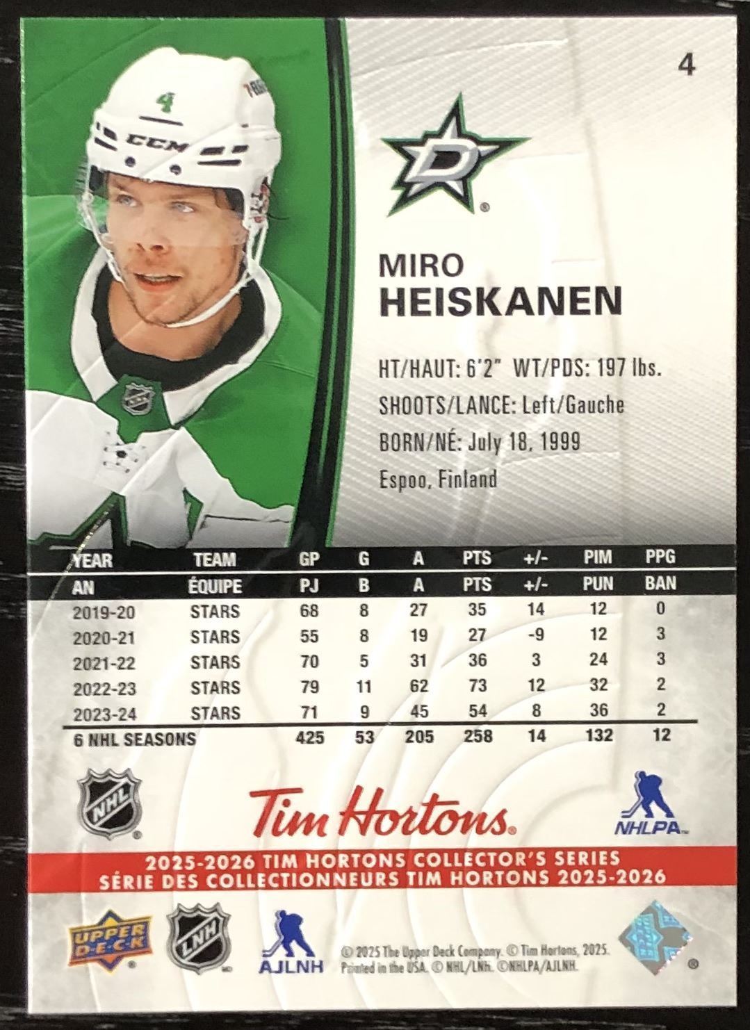 Lot 481 2025-26 UPPER DECK MIRO HEISKANEN