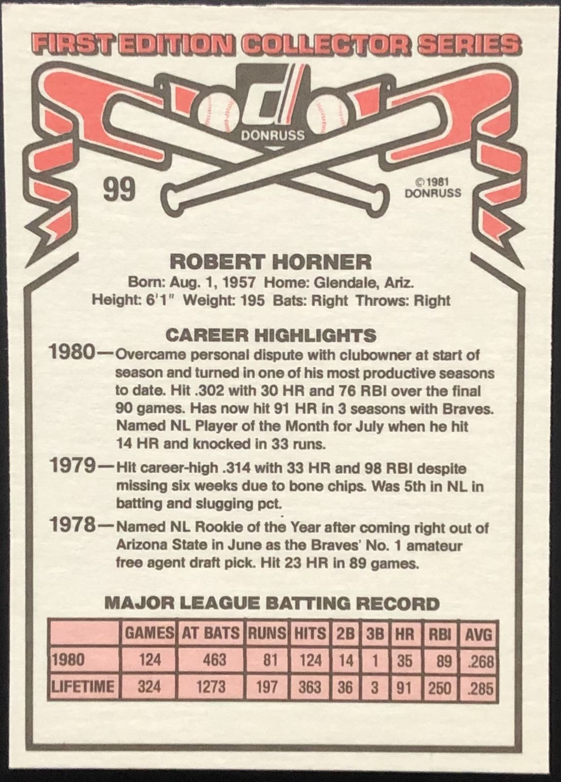 Lot 506 1981 DONRUSS BOB HORNER