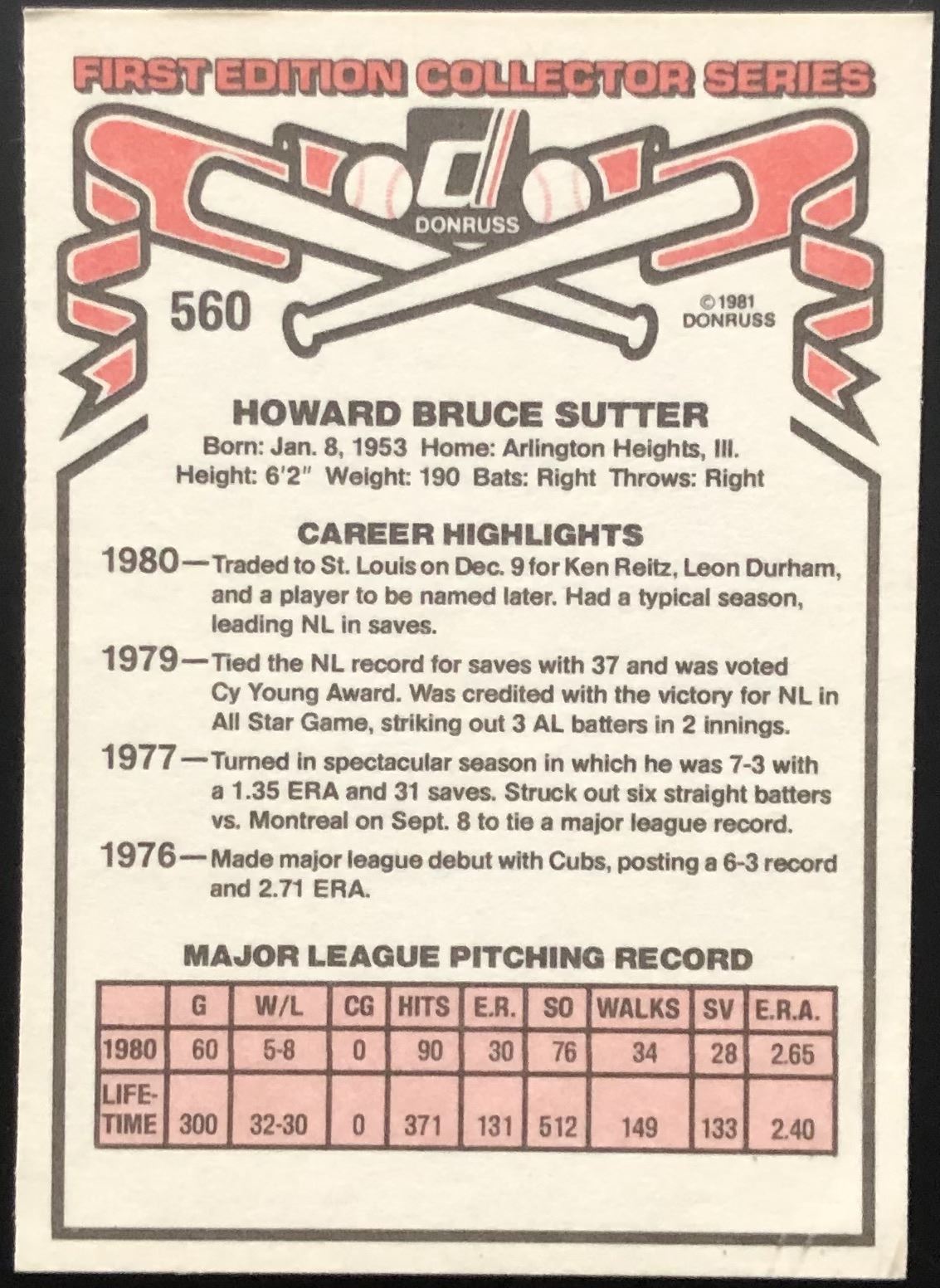 Lot 507 1981 DONRUSS BRUCE SUTTER (HOF)