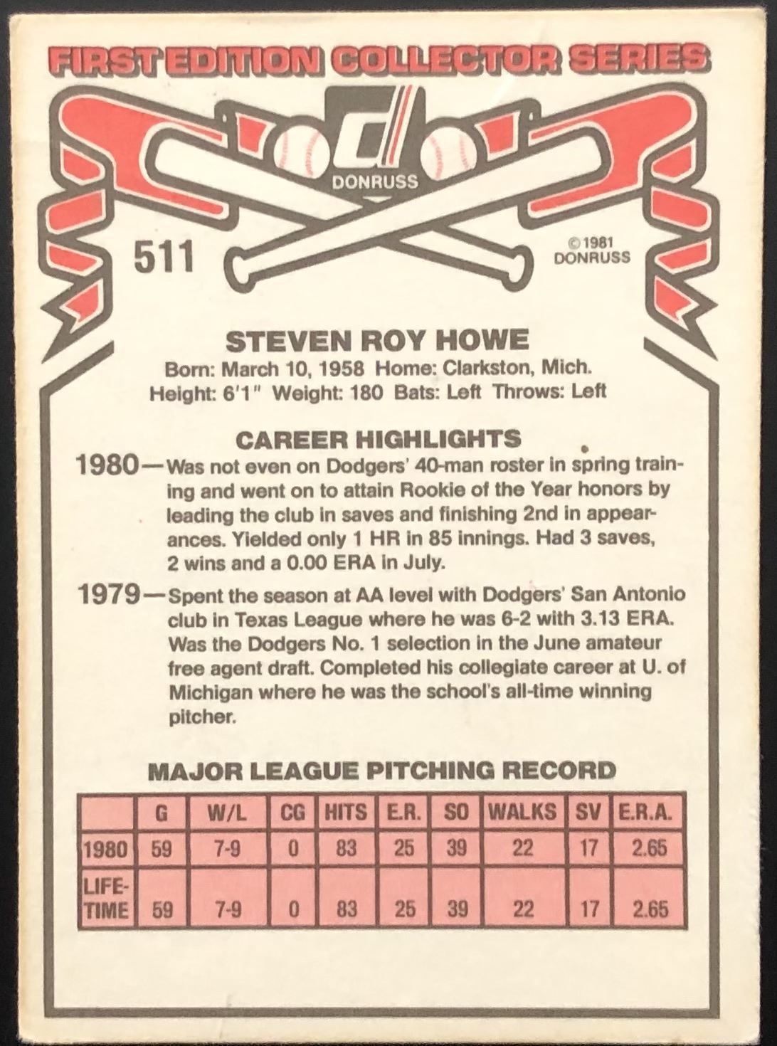 Lot 509 1981 DONRUSS STEVE HOWE ROOKIE CARD