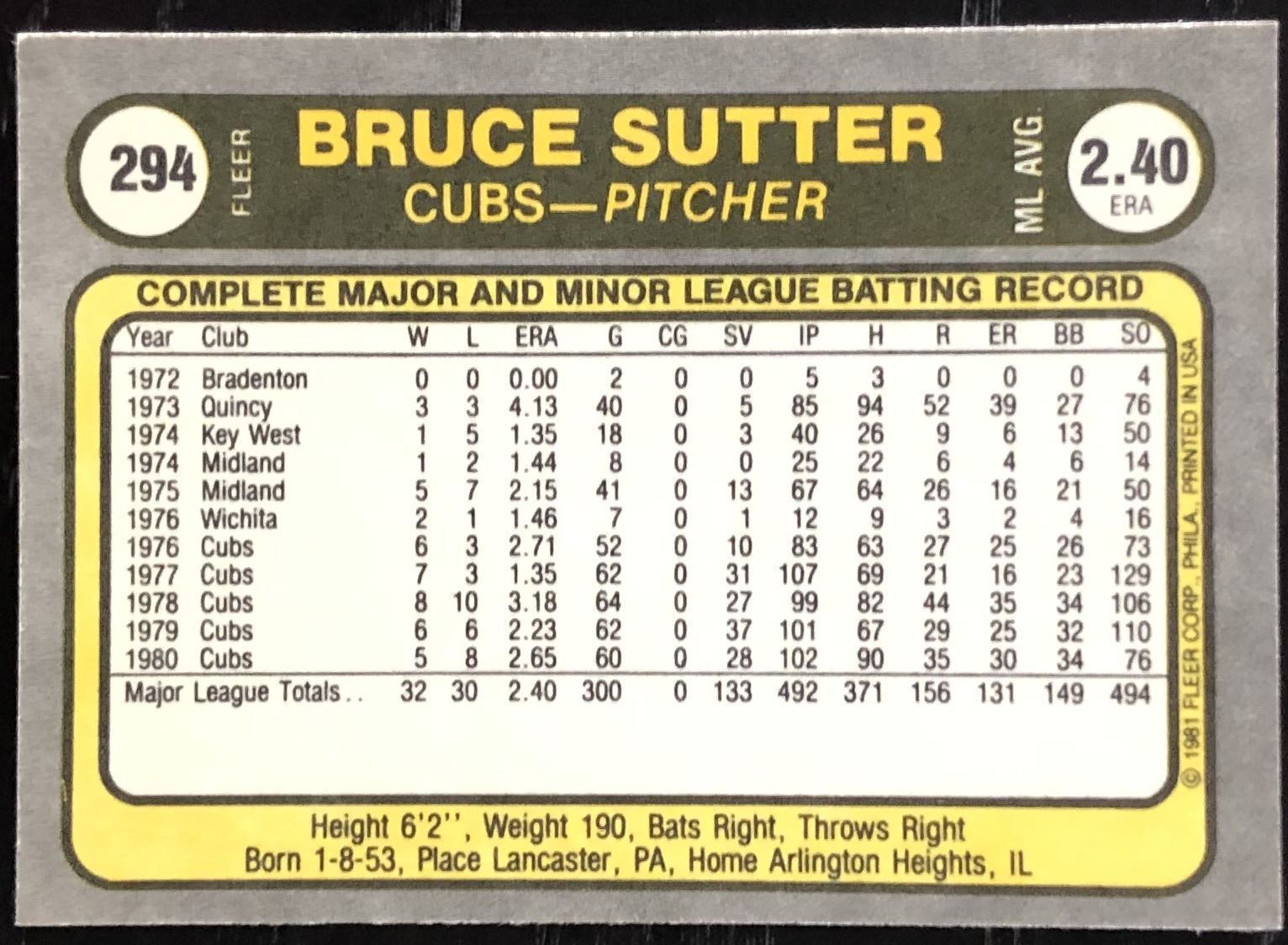Lot 513 1981 FLEER BRUCE SUTTER (HOF)