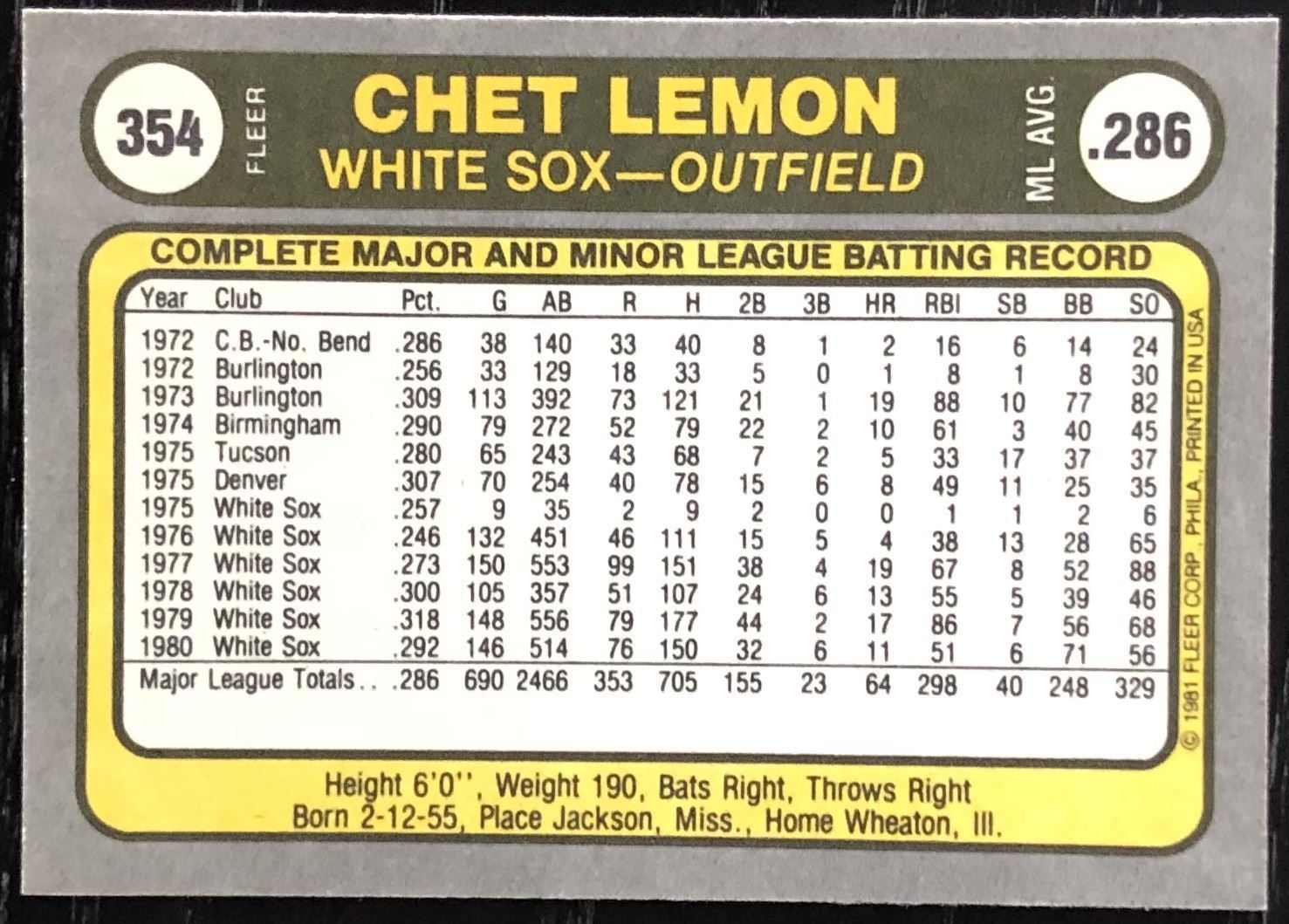 Lot 516 1981 FLEER CHET LEMON