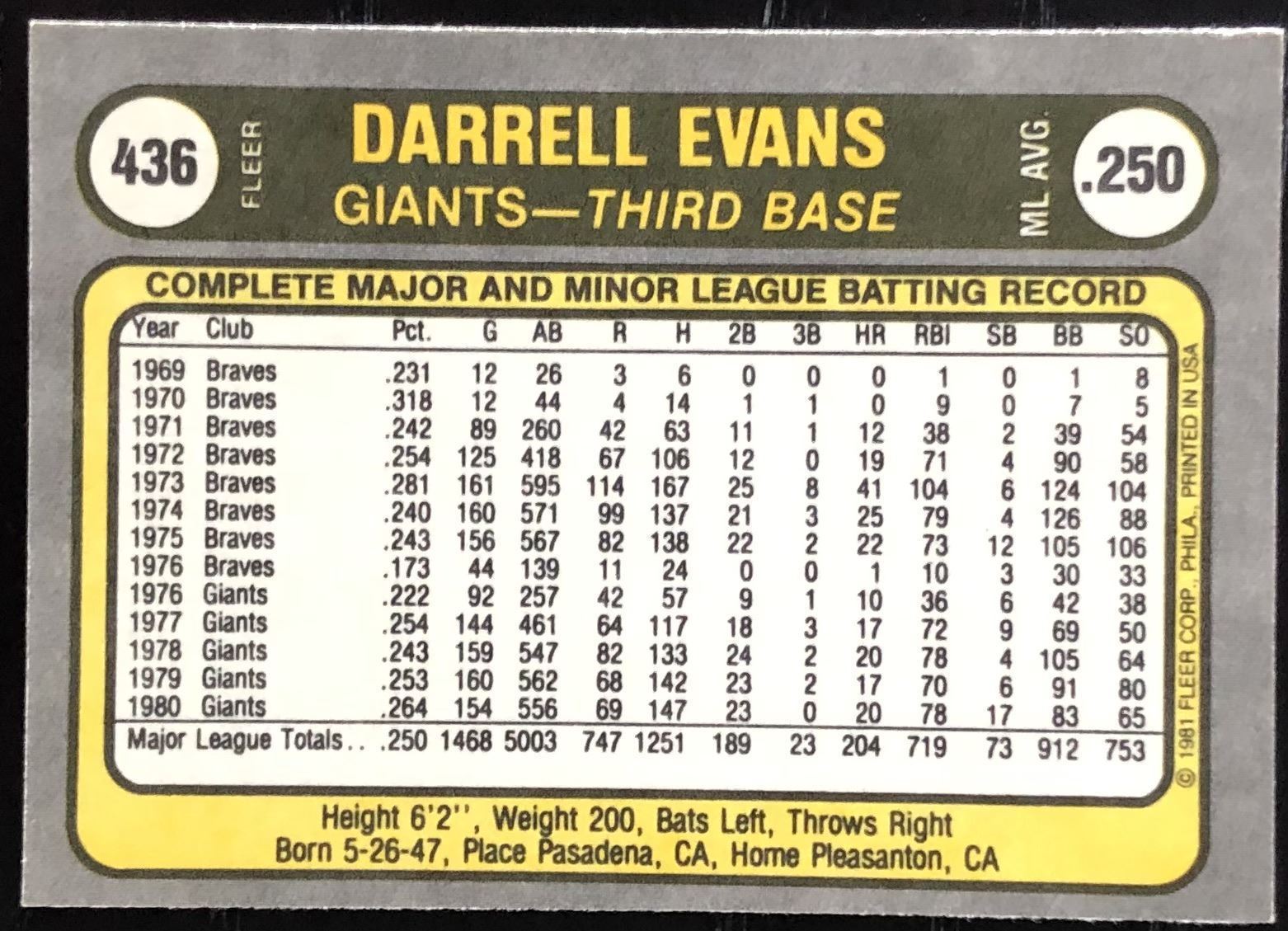 Lot 518 1981 FLEER DARRELL EVANS