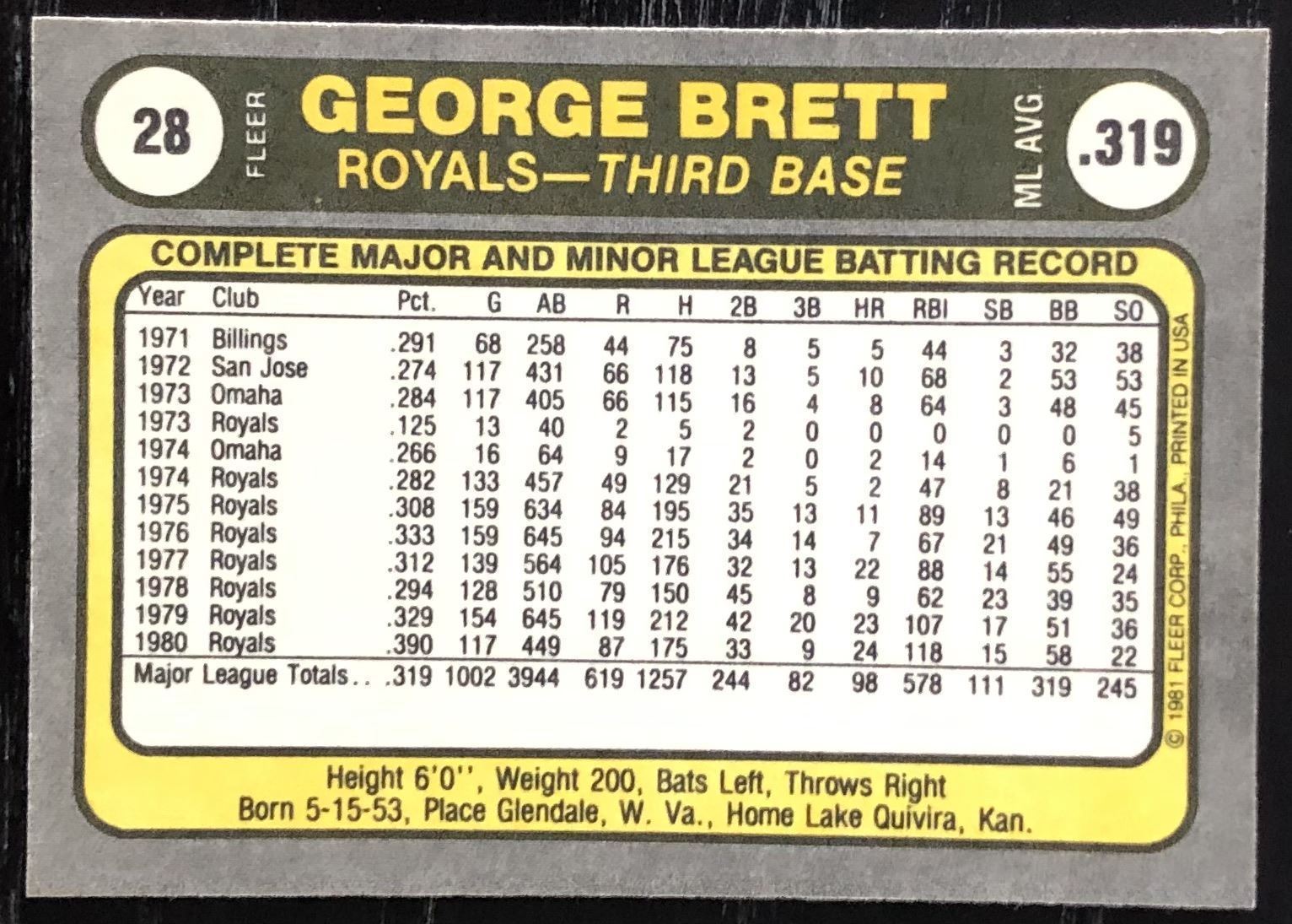 Lot 527 1981 FLEER GEORGE BRETT (HOF)