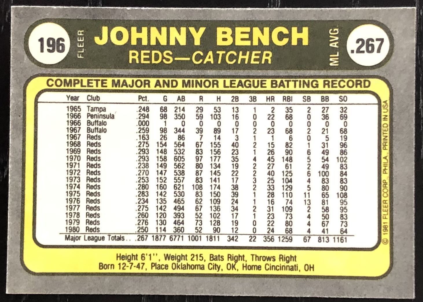 Lot 536 1981 FLEER JOHNNY BENCH (HOF)