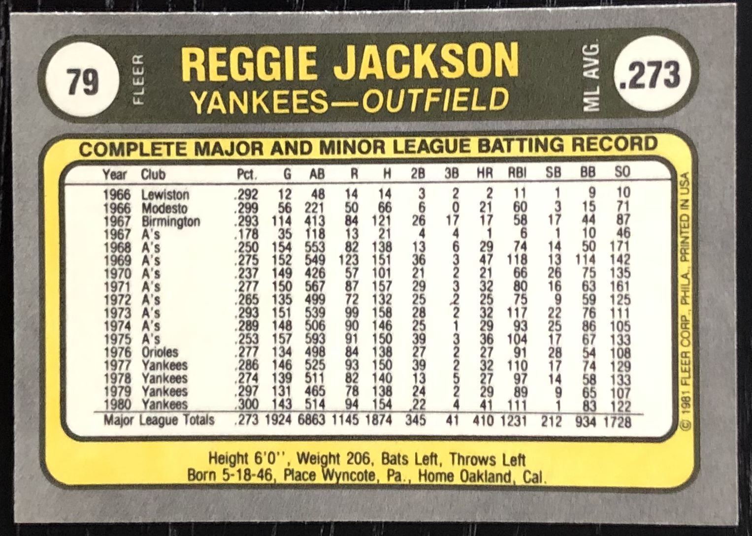Lot 539 1981 FLEER REGGIE JACKSON (HOF)