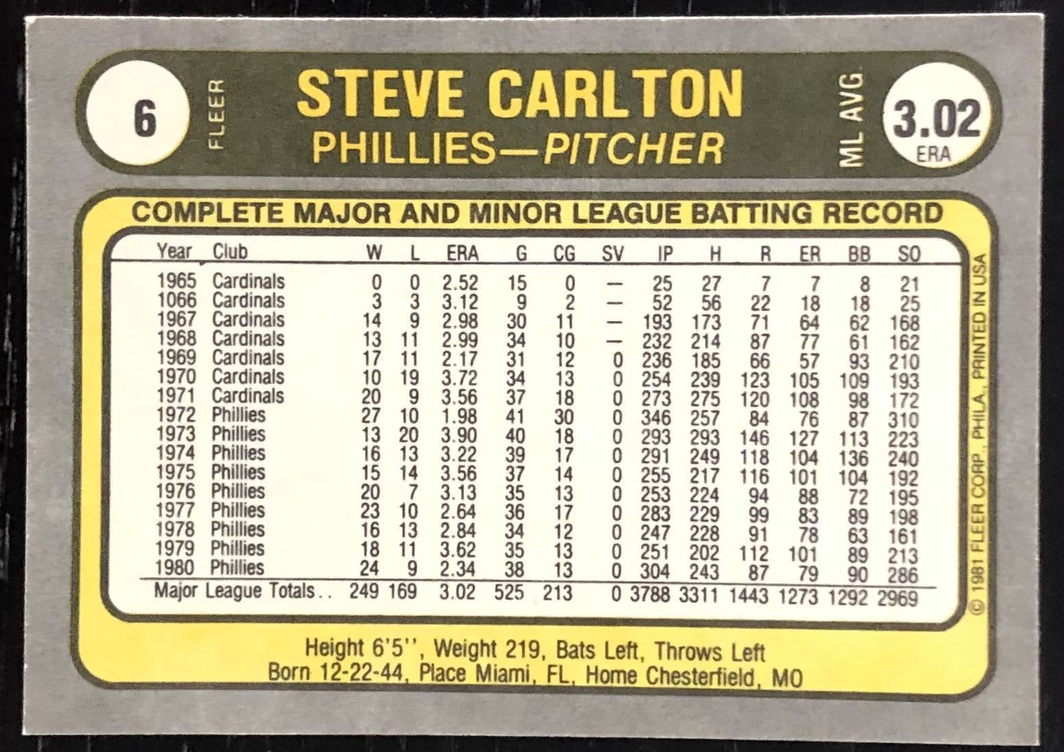 Lot 542 1981 FLEER STEVE CARLTON (HOF)