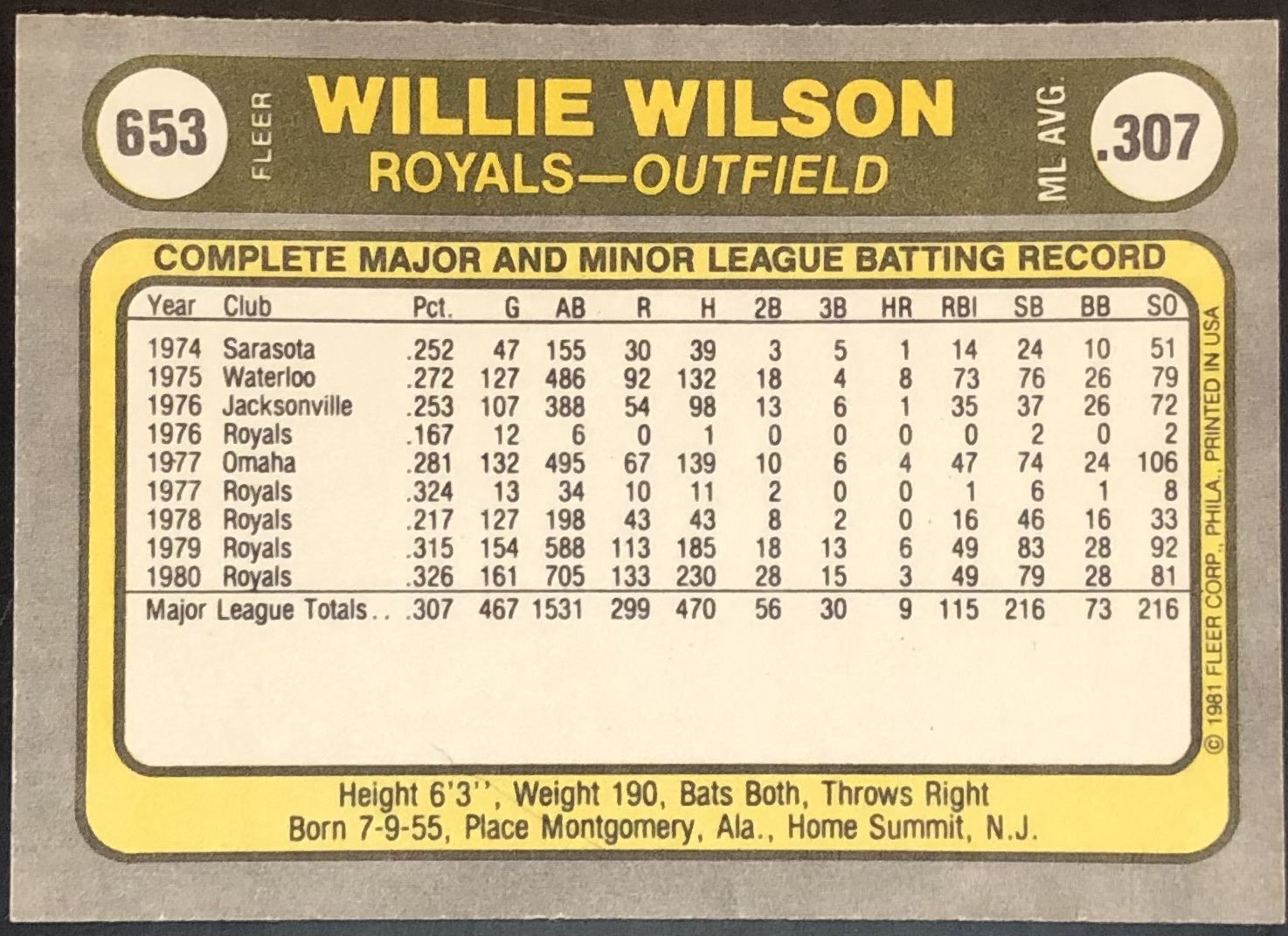 Lot 546 1981 FLEER WILLIE WILSON