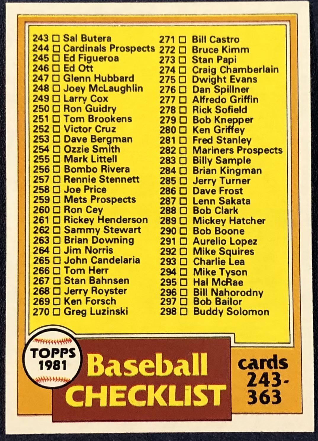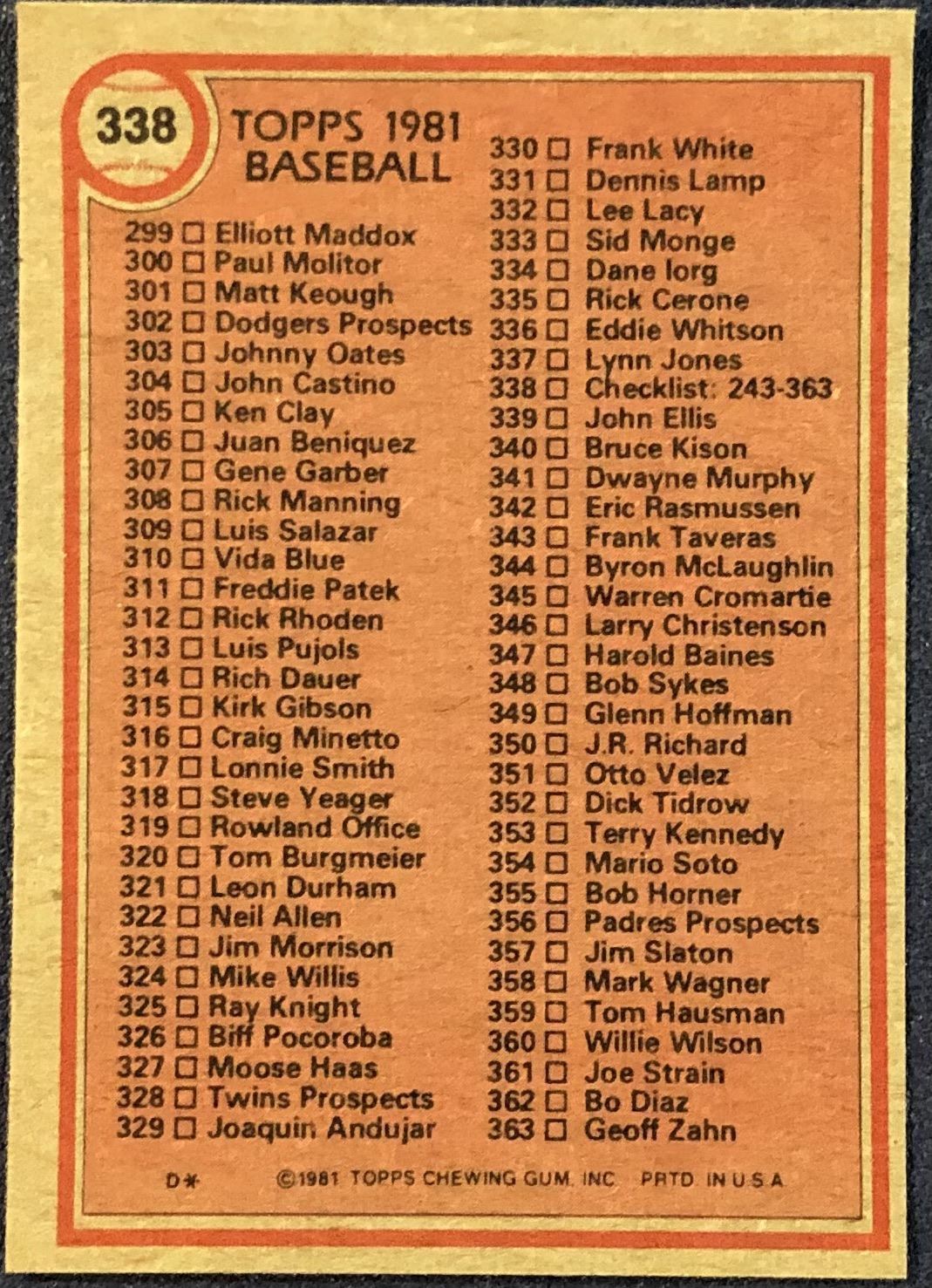 Lot 561 1981 TOPPS CHECKLIST