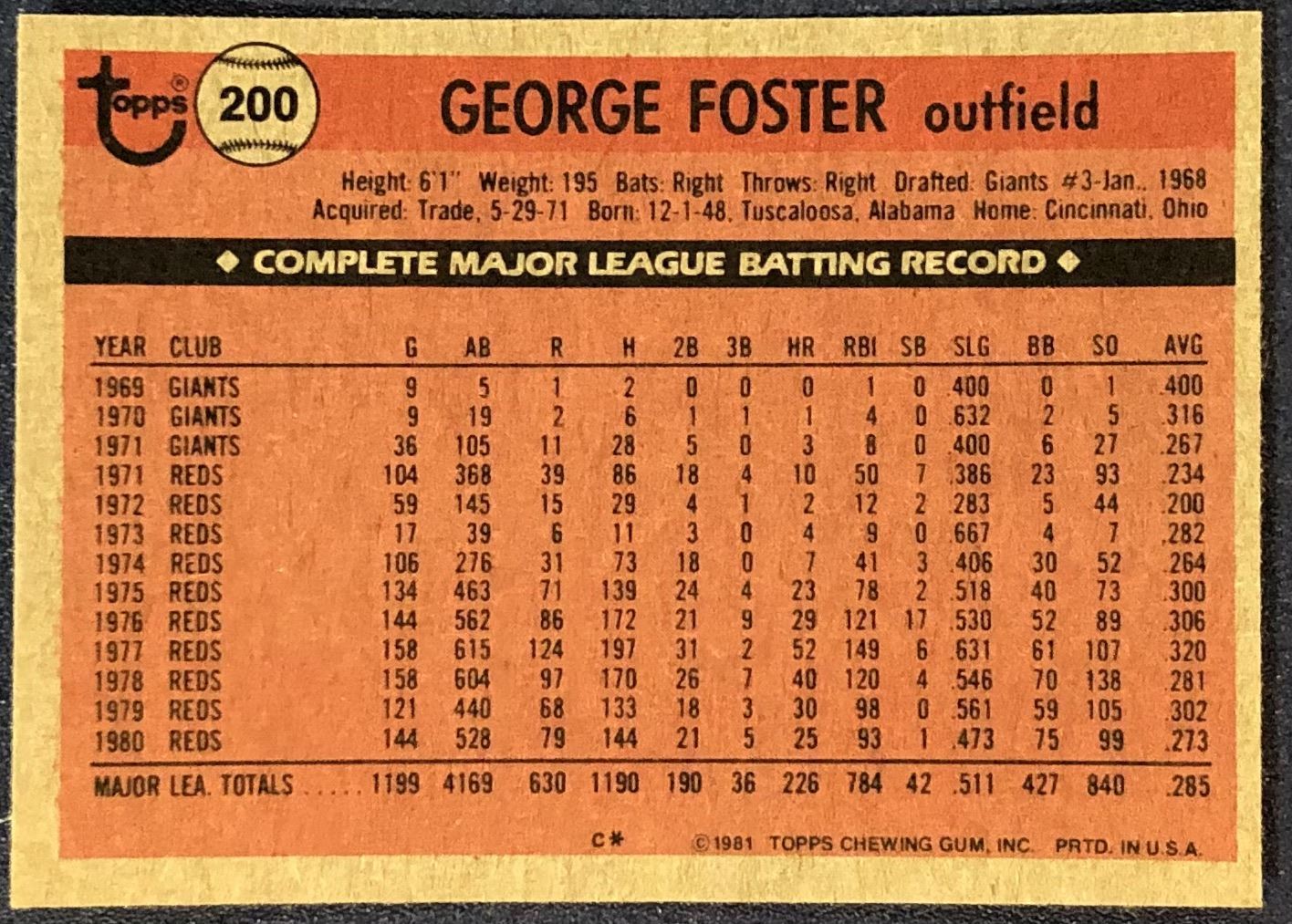 Lot 571 1981 TOPPS GEORGE FOSTER