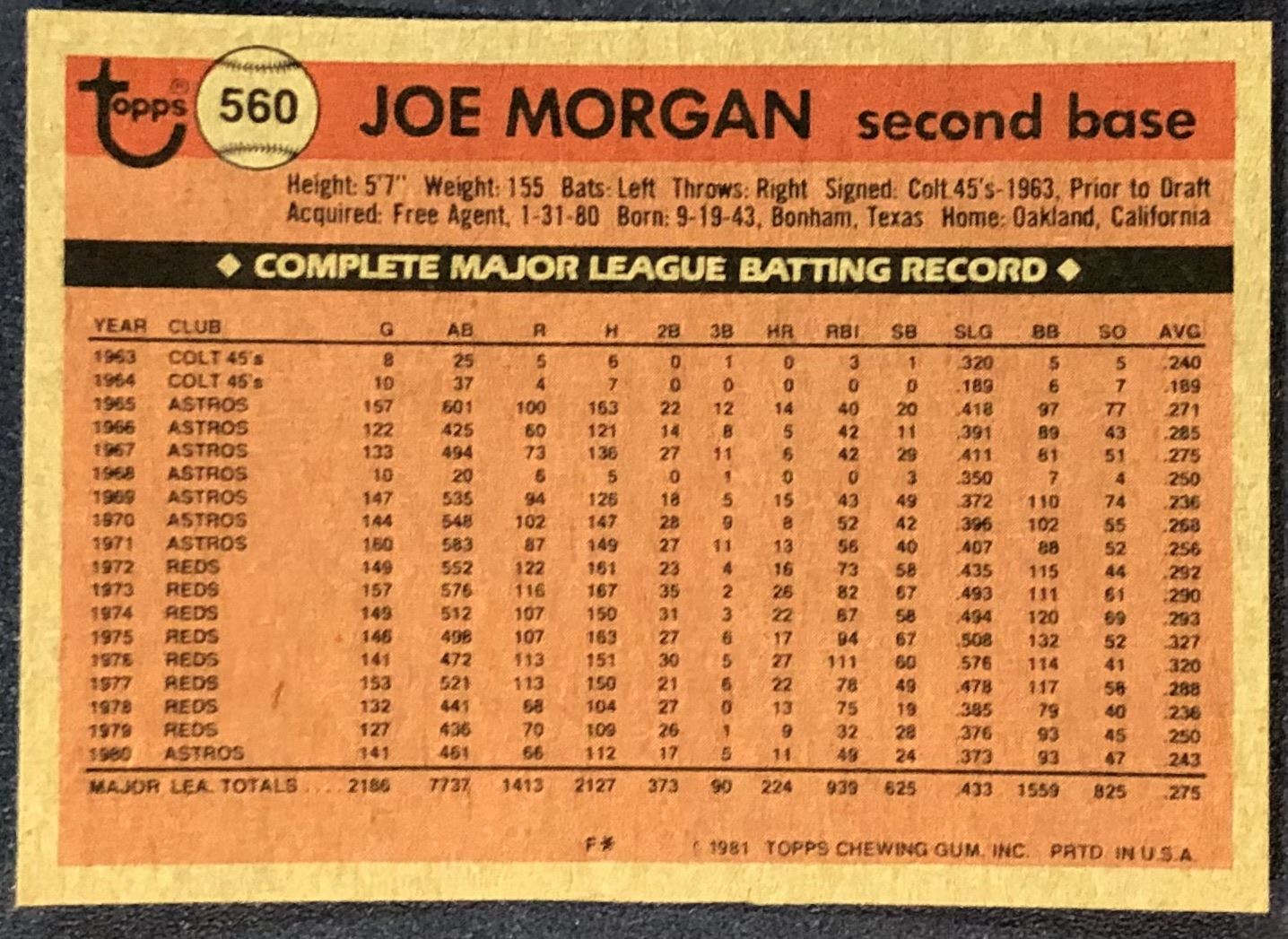 Lot 573 1981 TOPPS JOE MORGAN (HOF)