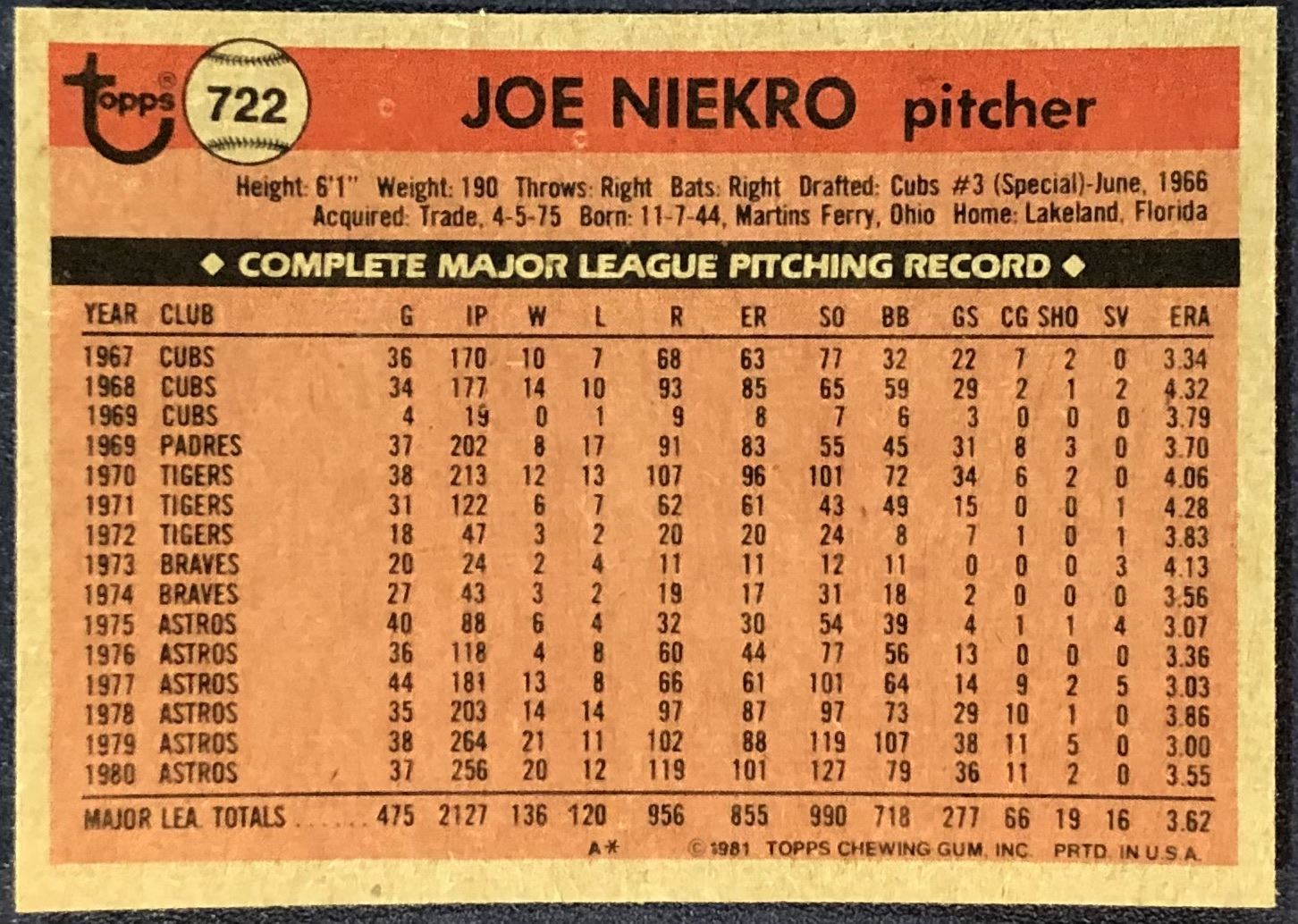 Lot 574 1981 TOPPS JOE NIEKRO (HOF)