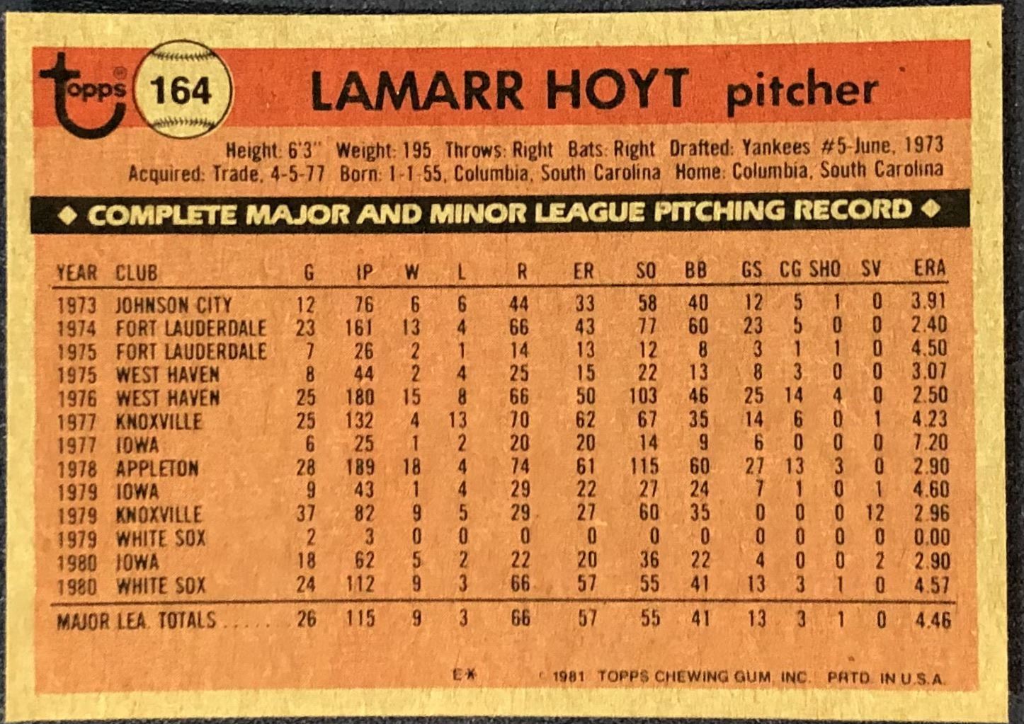 Lot 576 1981 TOPPS LAMARR HOYT ROOKIE CARD