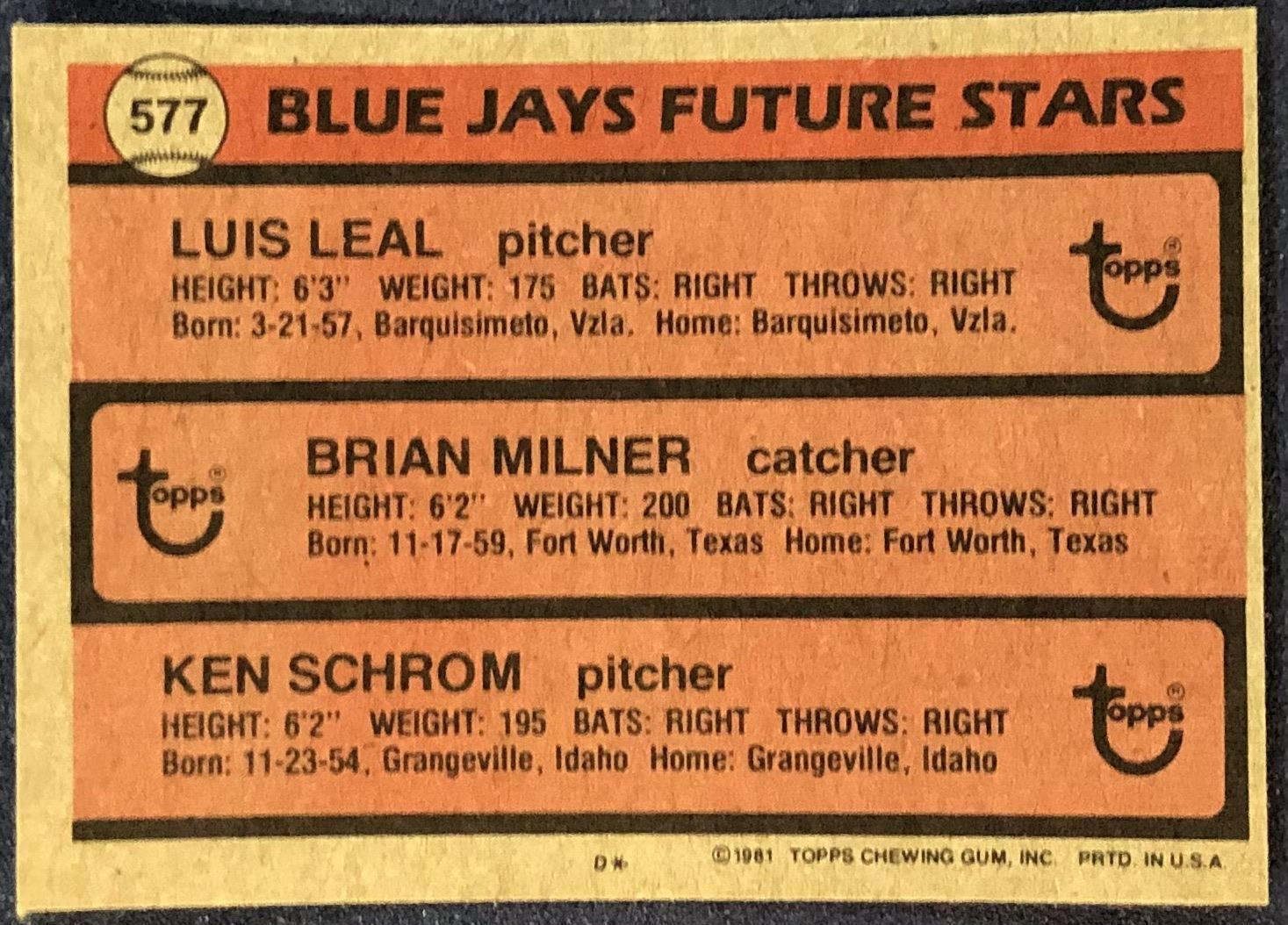 Lot 577 1981 TOPPS LUIS LEAL ROOKIE CARD