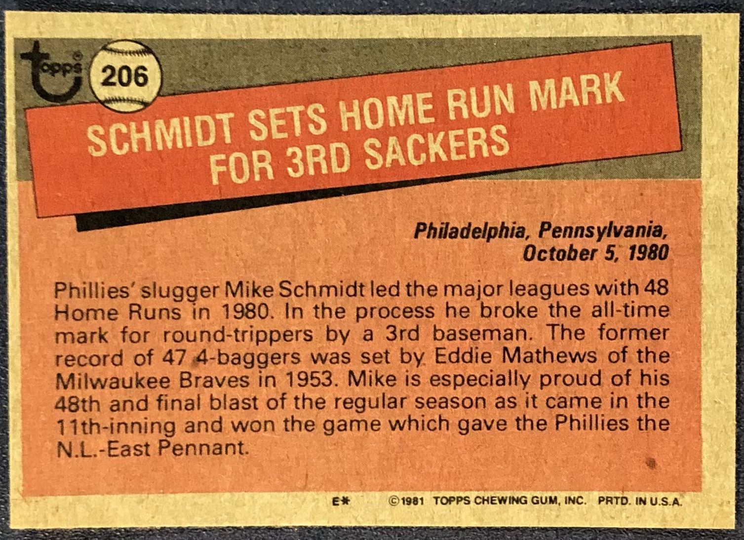 Lot 581 1981 TOPPS MIKE SCHMIDT (HOF)