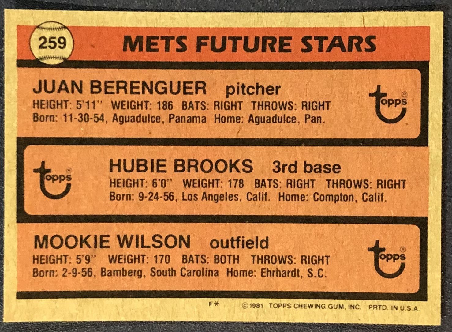 Lot 584 1981 TOPPS MOOKIE WILSON ROOKIE CARD