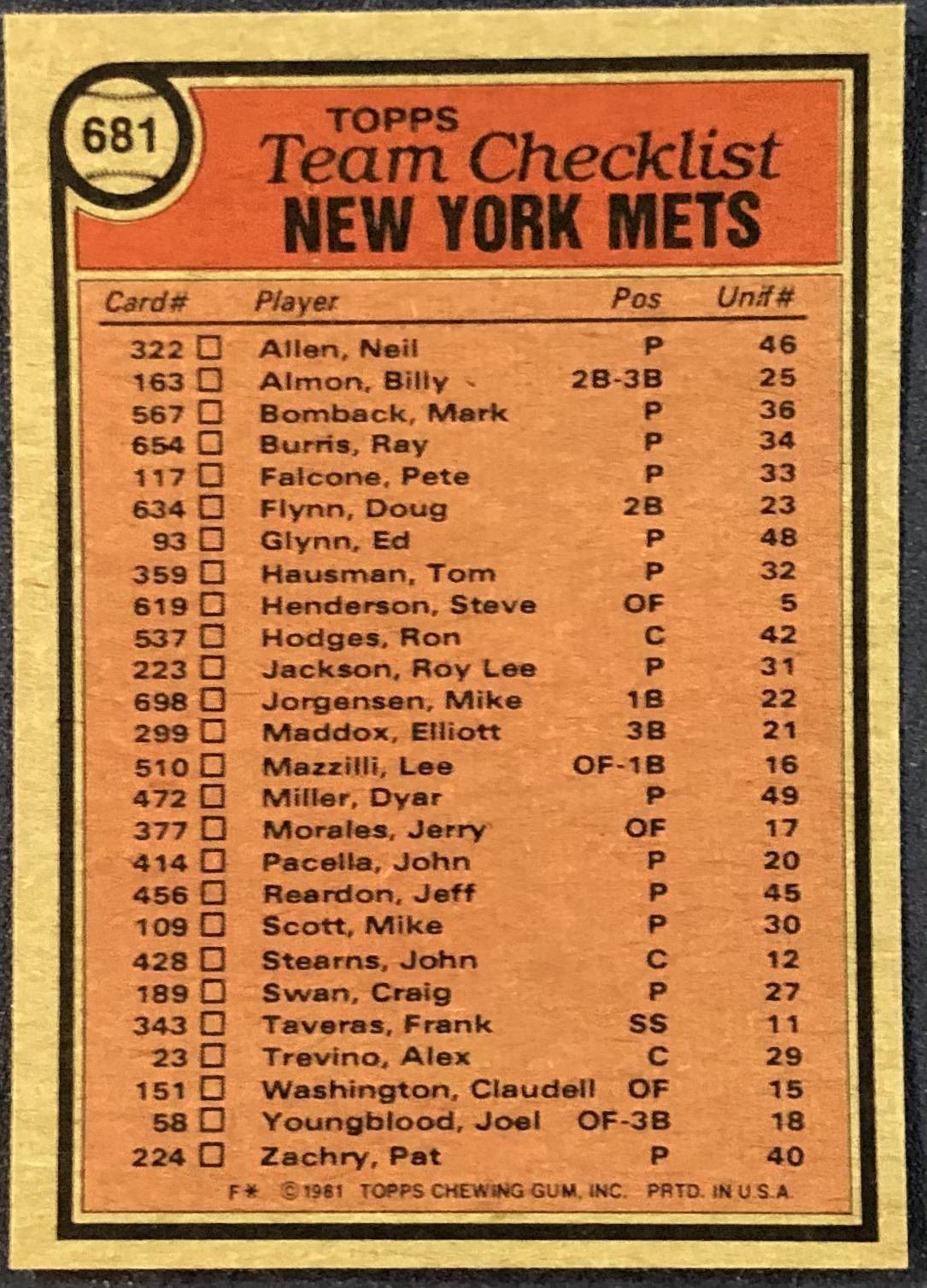 Lot 585 1981 TOPPS NEW YORK METS