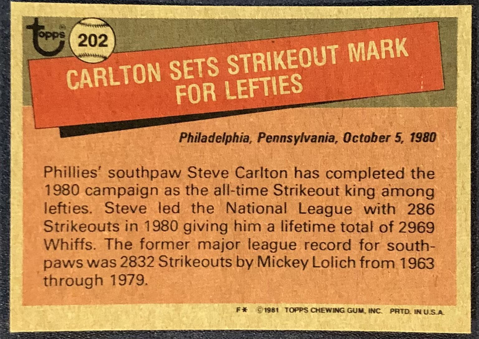 Lot 594 1981 TOPPS STEVE CARLTON (HOF)