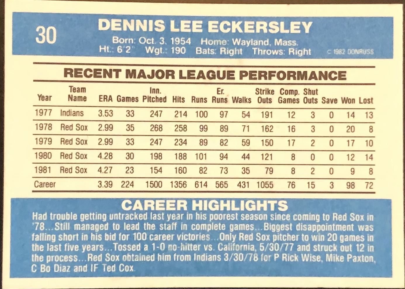 Lot 601 1982 DONRUSS DENNIS ECKERSLEY (HOF)