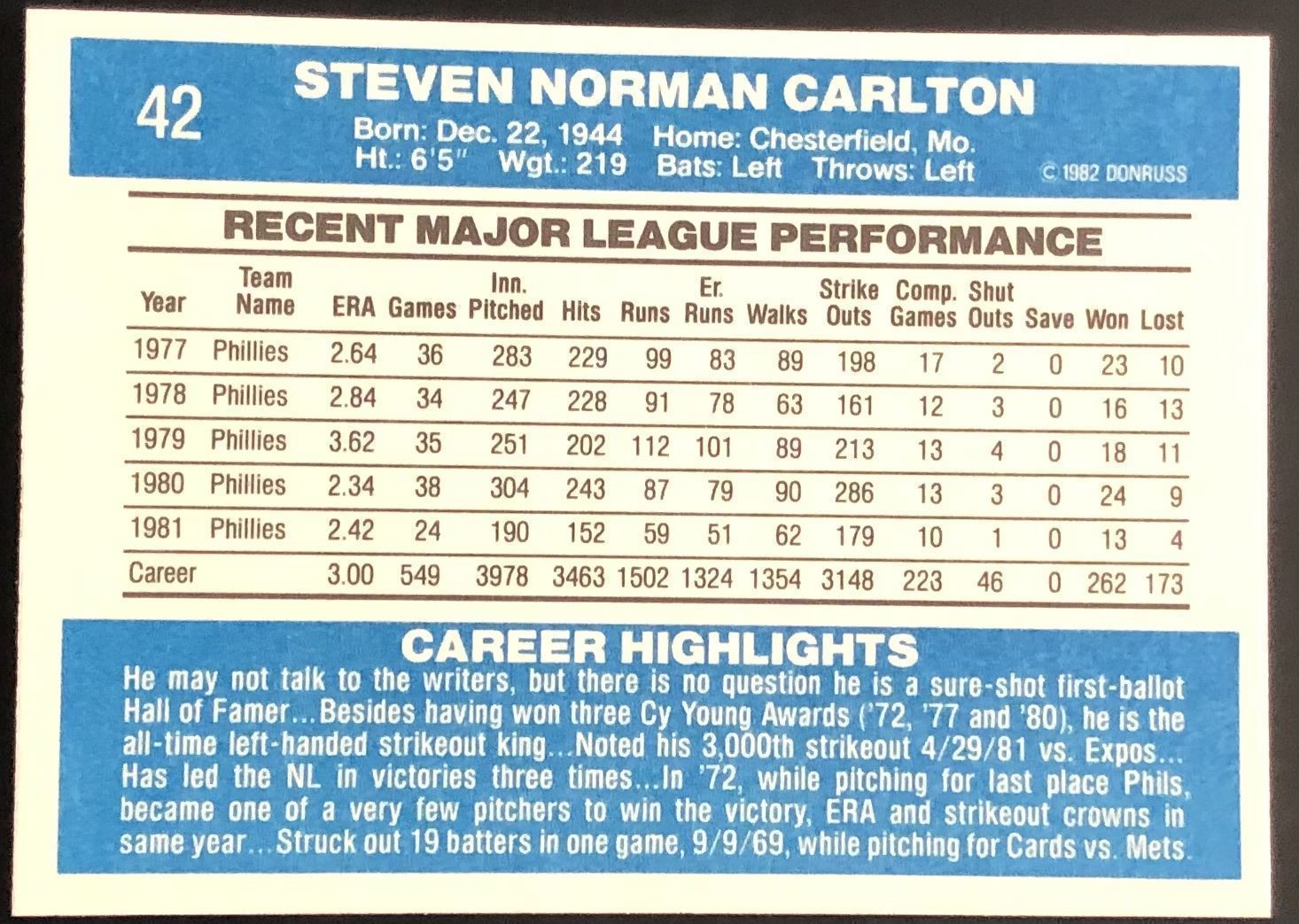 Lot 603 1982 DONRUSS STEVE CARLTON (HOF)