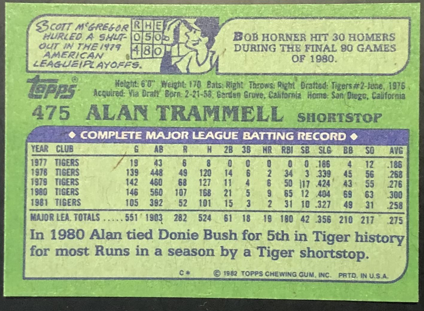 Lot 609 1982 TOPPS ALAN TRAMMELL (HOF)