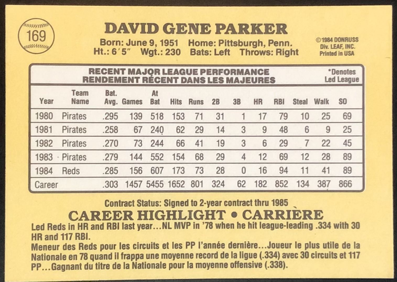 Lot 622 1985 LEAF DAVE PARKER (HOF)