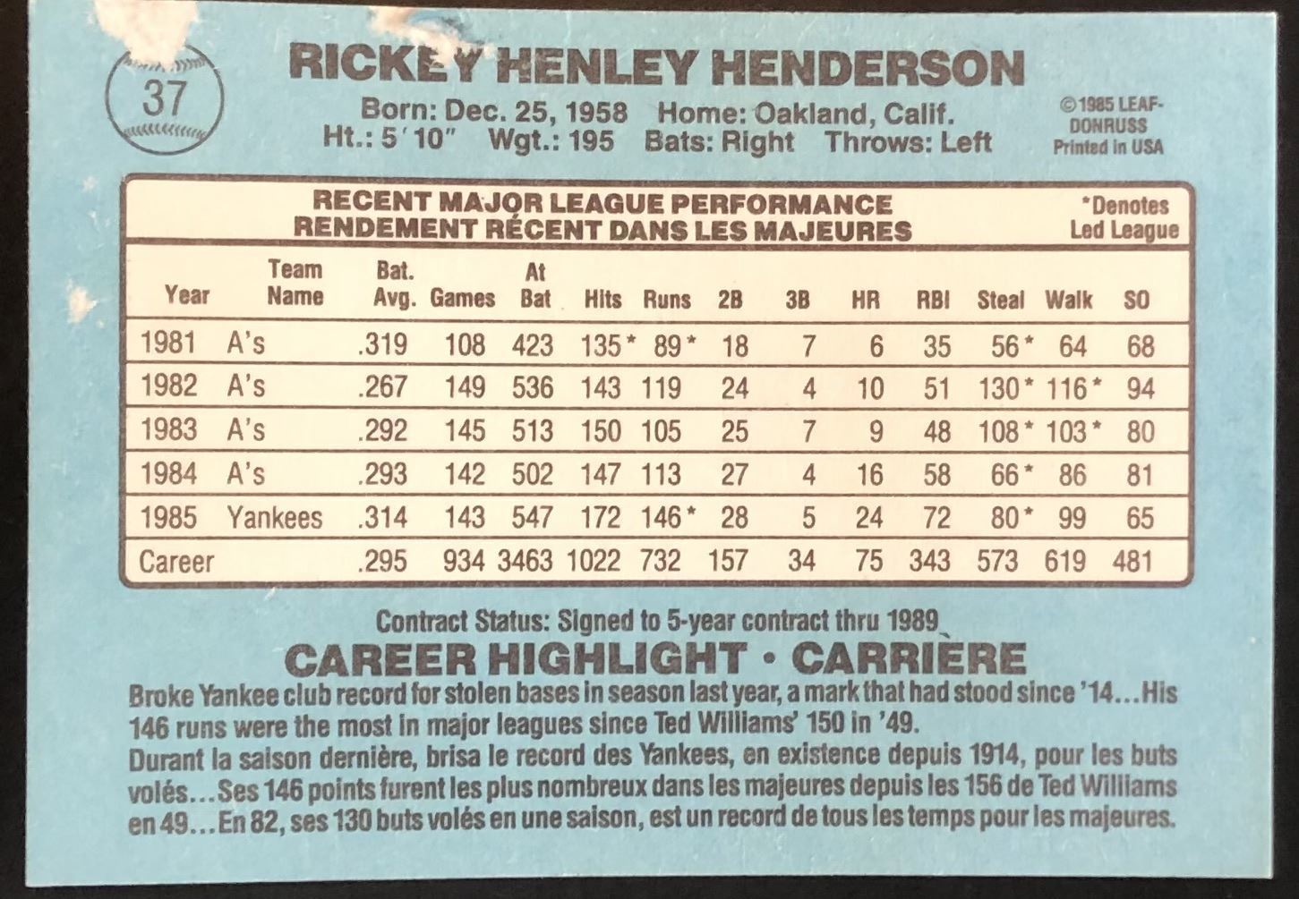 Lot 631 1986 LEAF RICKEY HENDERSON (HOF)