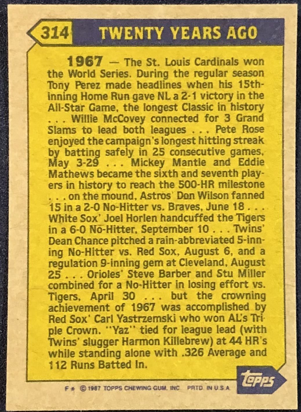 Lot 660 1987 TOPPS CARL YASTRZEMSKI (HOF)