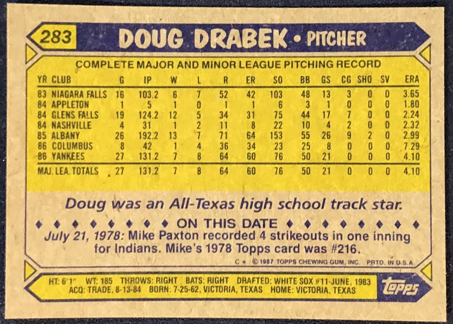 Lot 665 1987 TOPPS DOUG DRABEK ROOKIE CARD