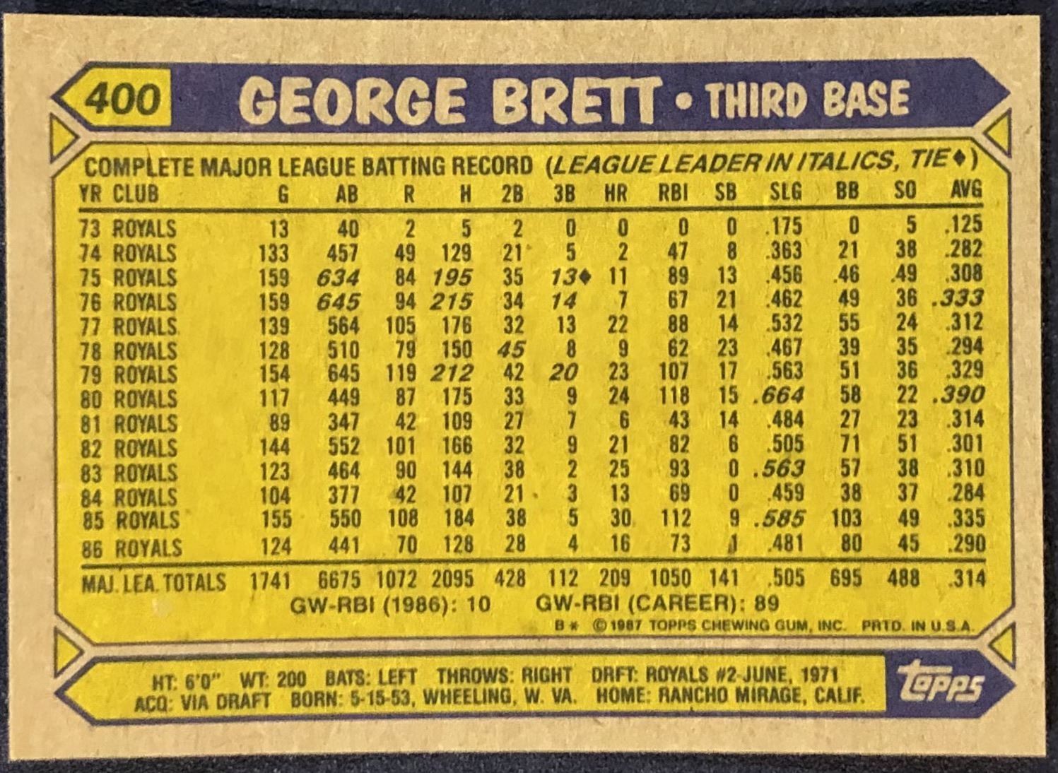 Lot 668 1987 TOPPS GEORGE BRETT (HOF)