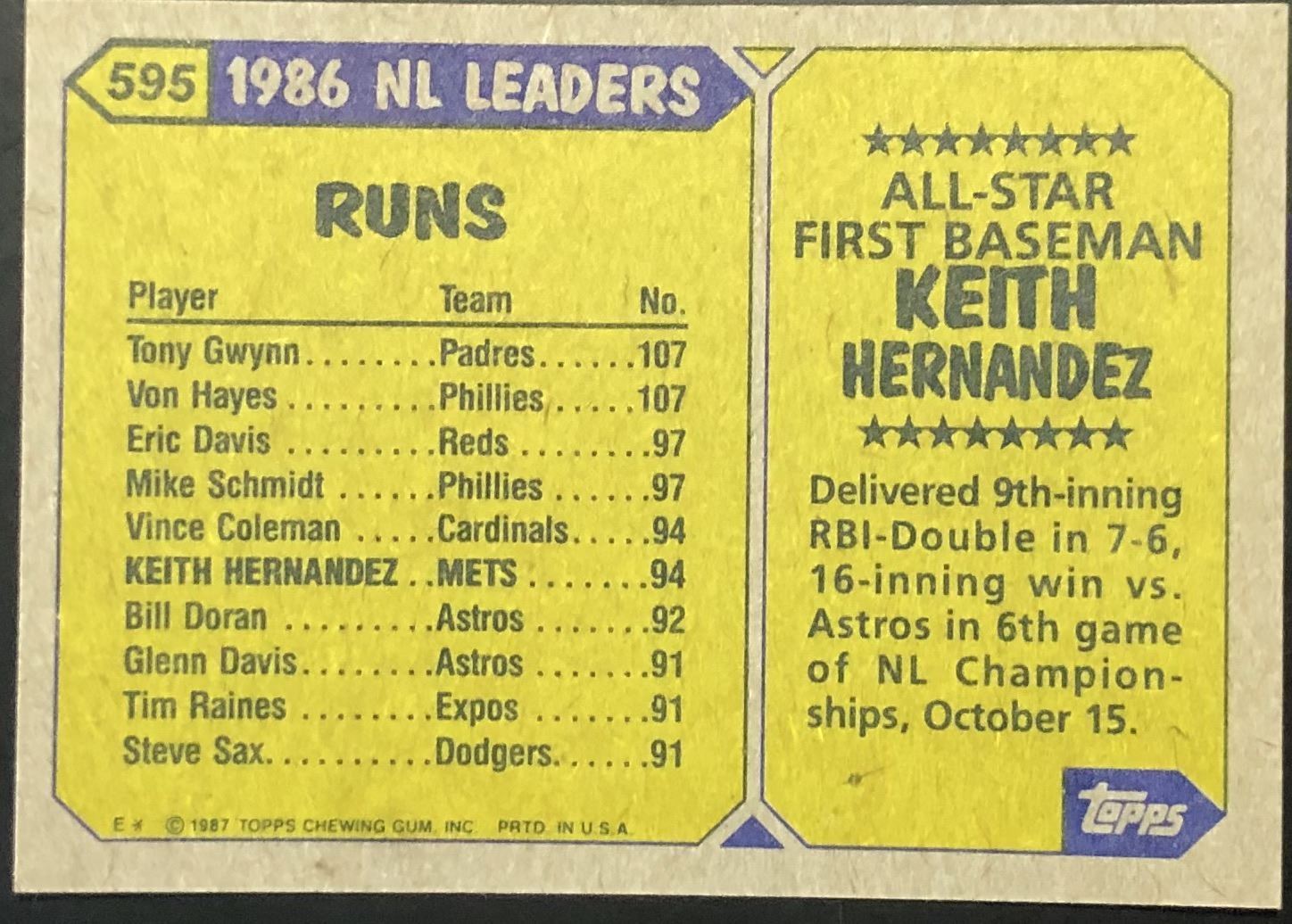 Lot 673 1987 TOPPS KEITH HERNANDEZ